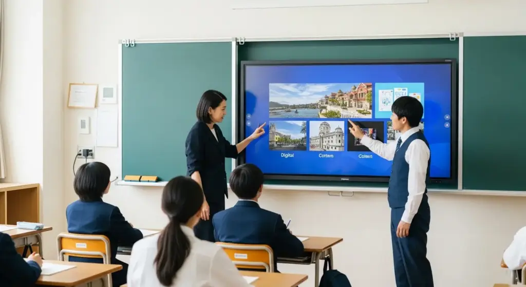 例えば、GIGAスクール構想で導入が進む学校では、デジタル教科書を大画面に映して直接書き込み、生徒の意見を瞬時に共有するなど、双方向性の高い授業が実現しています。
